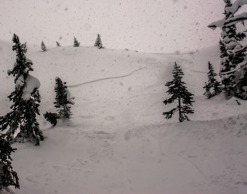 I started berating myself immediately. What the hell was I thinking? Why didn’t I ski cut first? Why did I ski this slope when it was obviously safer to ski the skin track down? There were so many signs—shooting cracks and loud naturals rumbling in the unseen alpine. How could I have been so stupid?