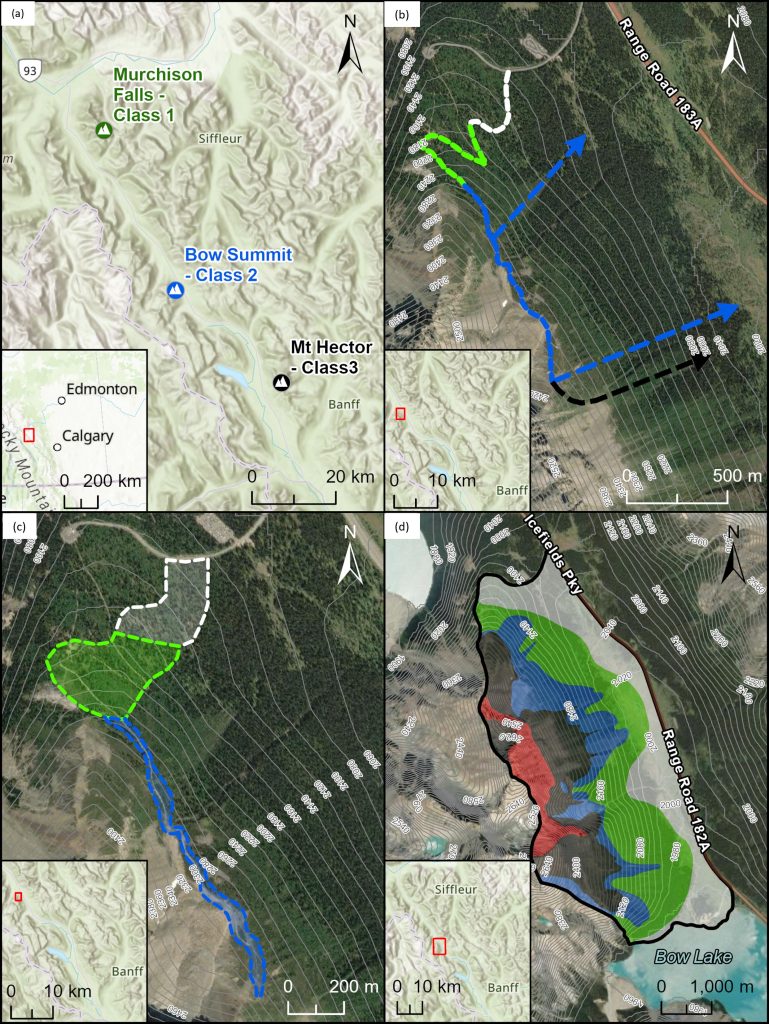 Rating avalanche terrain using ATES can be straightforward for single routes with single ratings. For uncomplicated terrain with good data, such as a well-travelled trail with only a few avalanche paths or an alpine bowl with high-quality mapping and imagery, sufficient accuracy can often be achieved without field surveys or complex analyses. For more complicated projects such as large areas with extensive avalanche terrain, unfamiliar travel routes, significant overhead hazard, or a need for small-scale ATES zones, a more rigorous approach and level of effort are necessary. Typically, this uses some combination of GIS analysis, field investigations, aerial photographs, satellite image interpretation, climate analysis, and runout estimation.