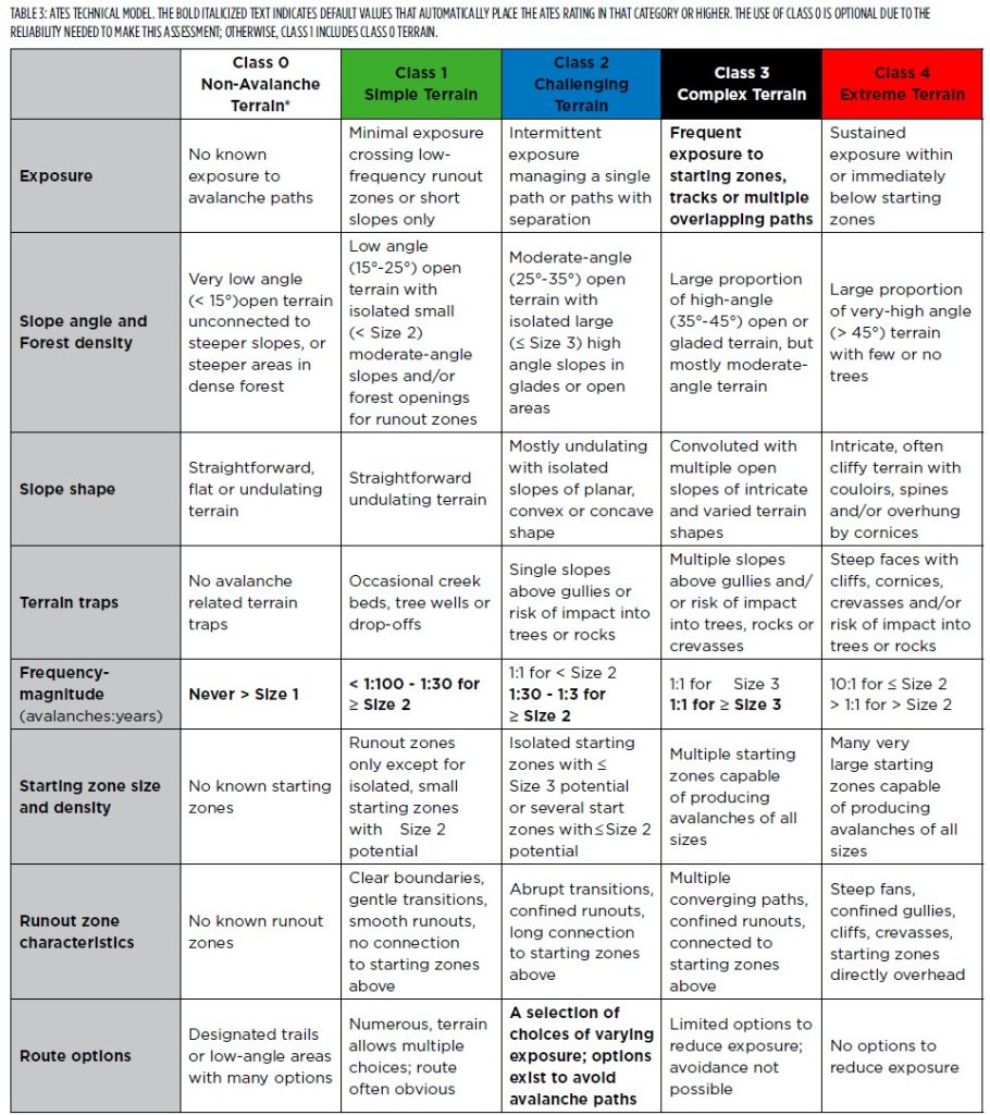 route might be sufficient (or multiple ratings along that route for a more precise assessment). ATES zone-mapping might be more appropriate if you’re creating an avalanche safety plan for roving field work that uses ATES ratings to dictate what kind of terrain can be accessed for a given avalanche danger.